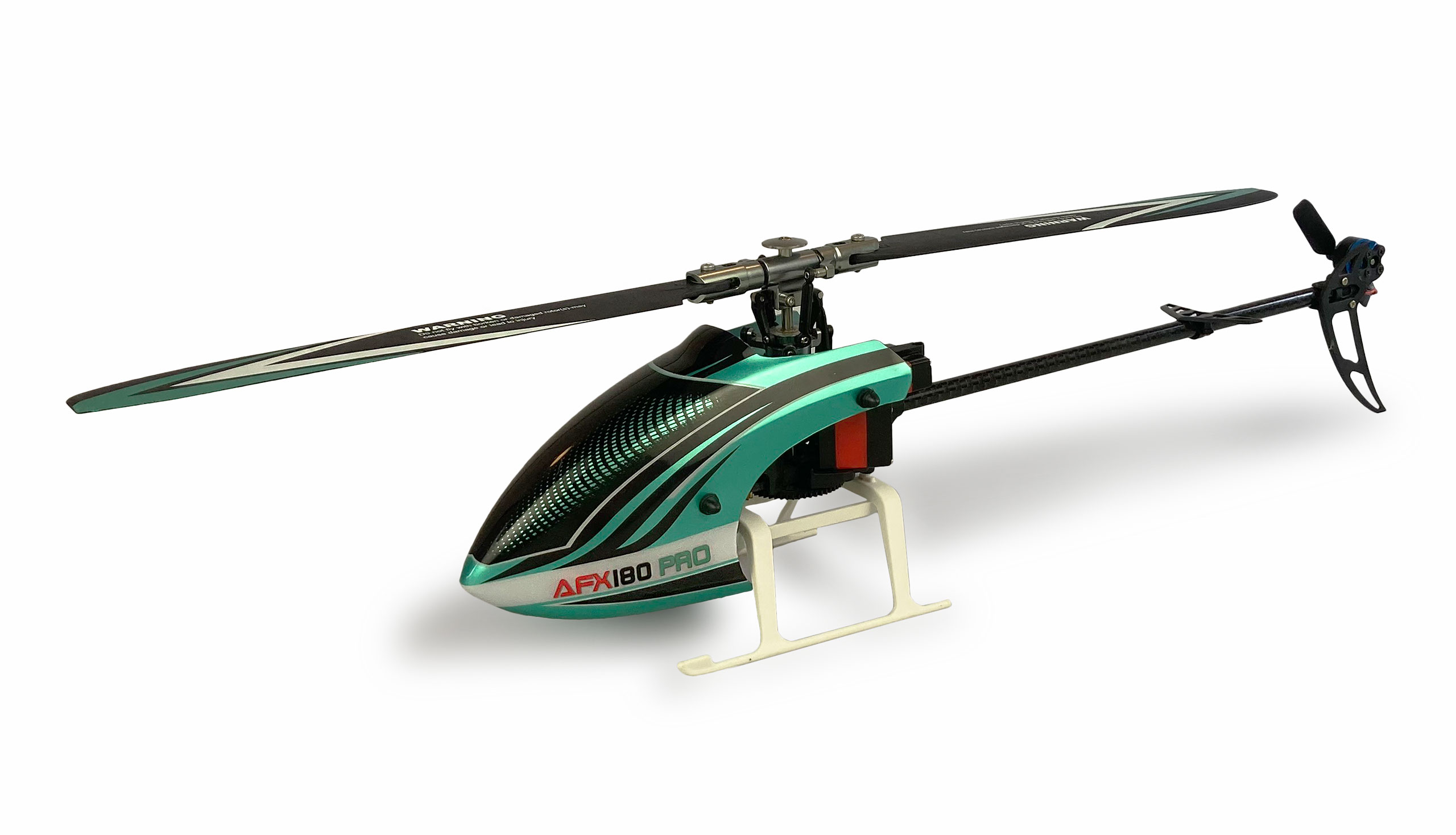 Satte Leistung trifft auf handliche Größe – herausgekommen ist der neue 3D 6-Kanal Hubschrauber AFX Pro 180 3D flybarless. Das Modell verfügt über einen extrem starken Antrieb (1308 Brushless-Motor mit 6500KV) und einen hochdrehenden Heckmotor (1104 brushless), wodurch in Kombination mit dem präzisen Flybarless-System und dem LiPo Akku 7,4V 700mAh brutal viel Leistung ermöglicht wird. Für Umsteiger bzw. Einsteiger in den Bereich des Pitch gesteuerten 3D-Hubschrauber-Kunstfluges lässt sich dieser RC-Heli in mehreren Punkten anpassen: Aus der Box verfügt das Modell über einen einsteigertauglichen 6G-Modus. Hier wird über den Gasknüppel die Drehzahl eingestellt, sodass sich der AFX180 Pro wie ein normaler Fixed Pitch (drehzahlgesteuerter) Hubschrauber verhält. Das Ansprechverhalten und die Steigrate sind dabei nur besser und schneller. Über den Sender lässt sich alternativ in den 3D-Modus umschalten – wodurch dieser kleine Pitch gesteuerte Heli zu einem echten Monster wird. Die ungezähmte Kraft lässt das Modell geradezu in den Himmel schießen. Alle gängigen Kunstflugfiguren können problemlos geflogen werden. Der hochdrehende Heckmotor sorgt dabei für absolute Spurtreue und hält immer auf Kurs. Selbst im Rücken-Rückwärtsflug bleibt das Heck absolut präzise. Das gesamte Modell vermittelt ein enorm gutes Fluggefühl. Für die Umsetzung der Steuerbefehle am Rotorkopf sind drei hochwertige Digital Servos mit sehr schneller Reaktionszeit und Metallgetrieben verbaut. Der gesamte Rotorkopf und die Blatthalter sind aus Metall. Auch die Taumelscheibe wurde aus hochwertigem Aluminium hergestellt. Das Heckrohr aus Carbon hat zudem eine hohe Verwindungssteifigkeit. Die Hauptblätter wurden aus Composite-Stoffen gefertigt und die Heckblätter sind aerodynamisch an das System angepasst worden. Alle Komponenten harmonieren und ermöglichen eine bis dato fast unerreichbare Flugperformance. Der mitgelieferte 8-Kanal Sender liegt sehr gut in der Hand und lässt sich komfortabel bedienen. Alle Parameter sind bereits fertig eingestellt, sodass das Modell ist mit der enthaltenen Fernsteuerung wirklich sofort 'Ready-to-Fly' ist. Als weiteres Highlight kann der Heli jedoch ebenfalls über das Flybarless-System mit Spektrum-Satelliten verbunden werden, um alternativ auch mit dem eigenen Sender (Spektrum DSMX oder DSM2) fliegen zu können.