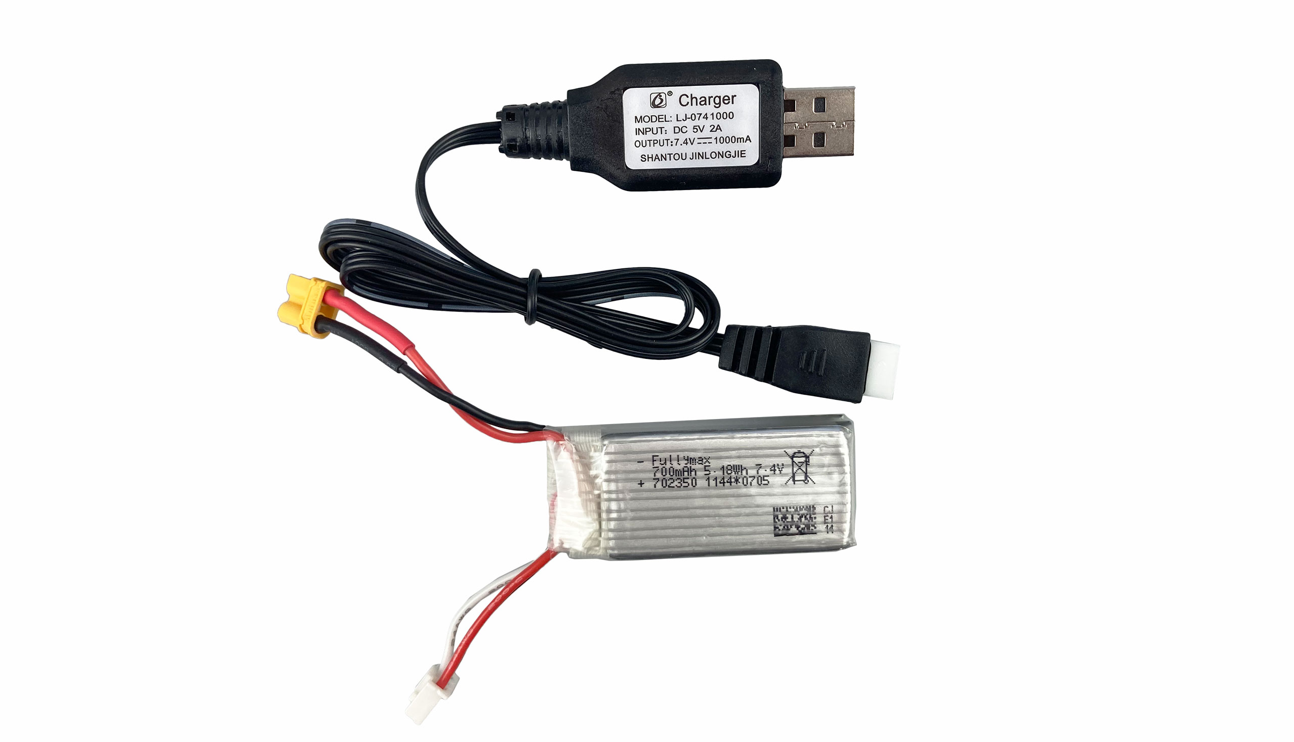 Akku: LiPo 2S 7,4V 700mAh, 25C, XT30, 55x21x15mm, 36g