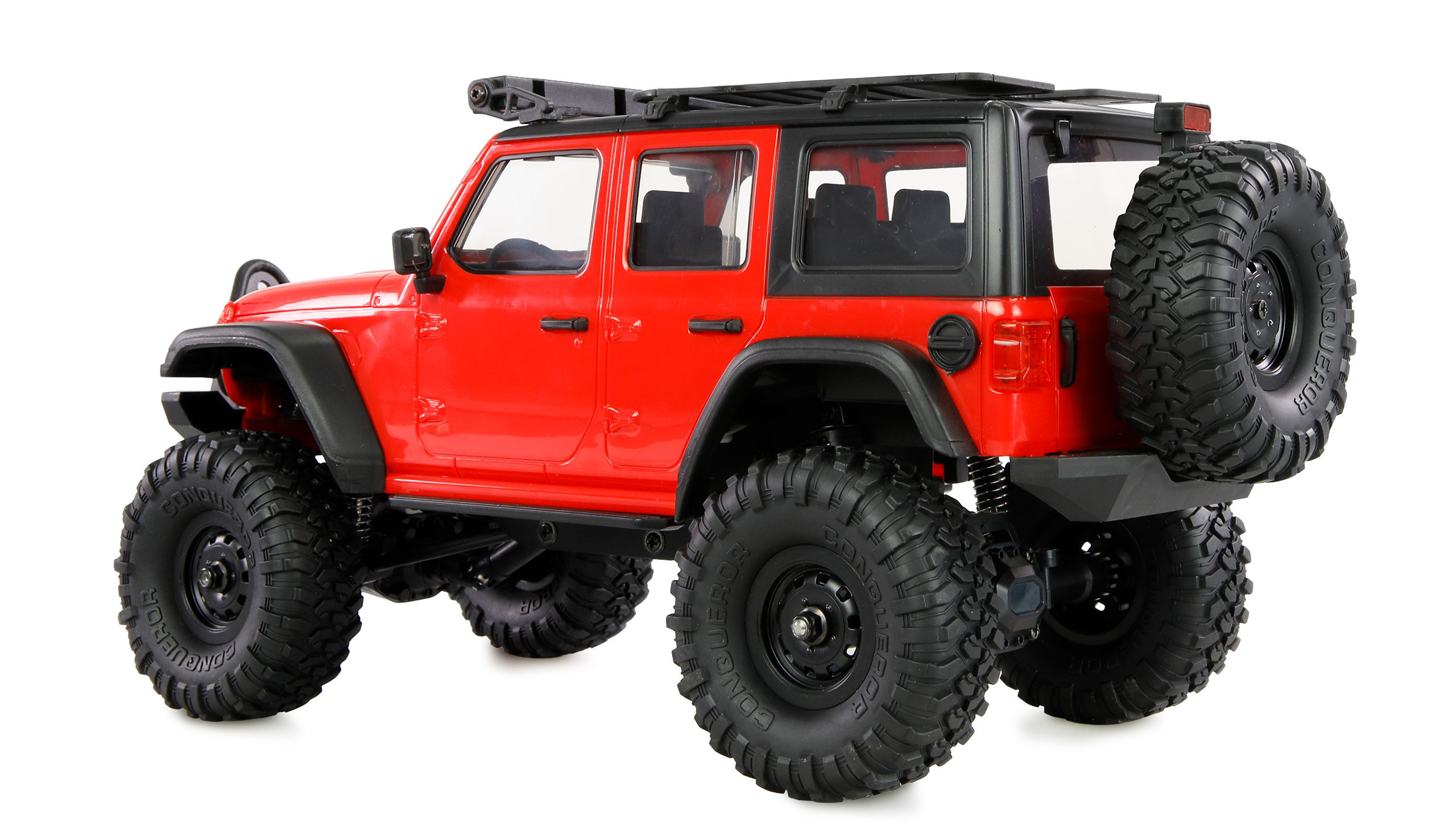 Die integrierte Gastrimmung kann auch als Tempomat genutzt werden und ermöglicht ein besonders präzises und entspanntes Crawlen, selbst auf anspruchsvollem Terrain. Mit seinem spritzwassergeschützten Gehäuse nach IPX4-Standard ist der Mini-Crosstrail auch bei feuchten Bedingungen einsatzbereit. Der kraftvolle 4WD-Allradantrieb sorgt für optimale Traktion auf verschiedensten Untergründen, unterstützt durch eine Einzelradaufhängung, die für maximale Geländegängigkeit und Stabilität sorgt.