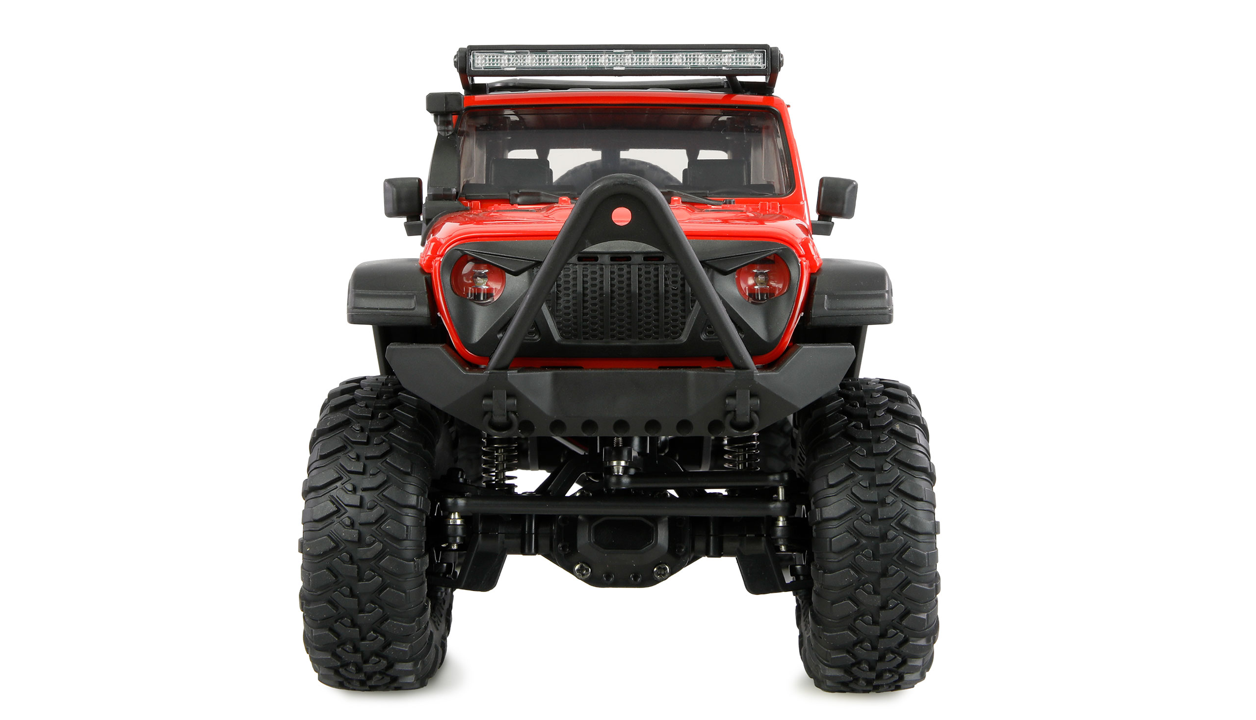 Der Mini-Crosstrail im Maßstab 1:16 ist ein kleiner, leistungsstarker Crawler, der mit durchdachter Technik, einfacher Elektronik und robuster Bauweise überzeugt. Dank seiner 4-fach schaltbaren LED-Beleuchtung vorne und hinten durch jeweils 1-maliges Drücken der Beleuchtungstaste, bietet er eine hervorragende Ausleuchtung der gewählten Strecke in der Dämmerung, während der zusätzliche in verschiedenen Modis schaltbare LED-Dachbalken (2-maliges schnelles Drücken der Beleuchtungstaste) für realistische Optik und gute Sichtbarkeit sorgt.