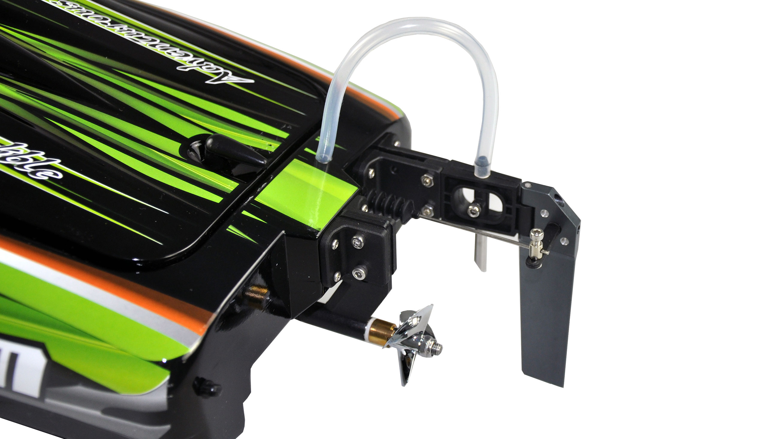 Sehr schneller Rennkatamaran in genialer Optik: Das neue Farbscheme überzeugt auf Anhieb und die komplette Ausstattung dieses Modells ist auf dem neuesten Stand der Technik. Der maximale Speed liegt bei ca. 60 - 65km/h "out of the Box" (Akkus für den Betrieb müssen noch erworben werden) Die mitgelieferte 2,4GHz Fernbedienung ist sehr feinfühlig und die Lenkauschläge lassen sich separat einstellen. Somit ist ein realistisches Fahrverhalten problemlos zu erreichen. Dieses tolle Rennboot überzeugt mit Leistung, Ausstattung und Optik. Als Upgrade wurden diese Modelle dieser Serie auf XT60 Kontakte geändert. Zusätzlich liegen dem Set 2 x XT 60 Kontakte für die Akkus bei.