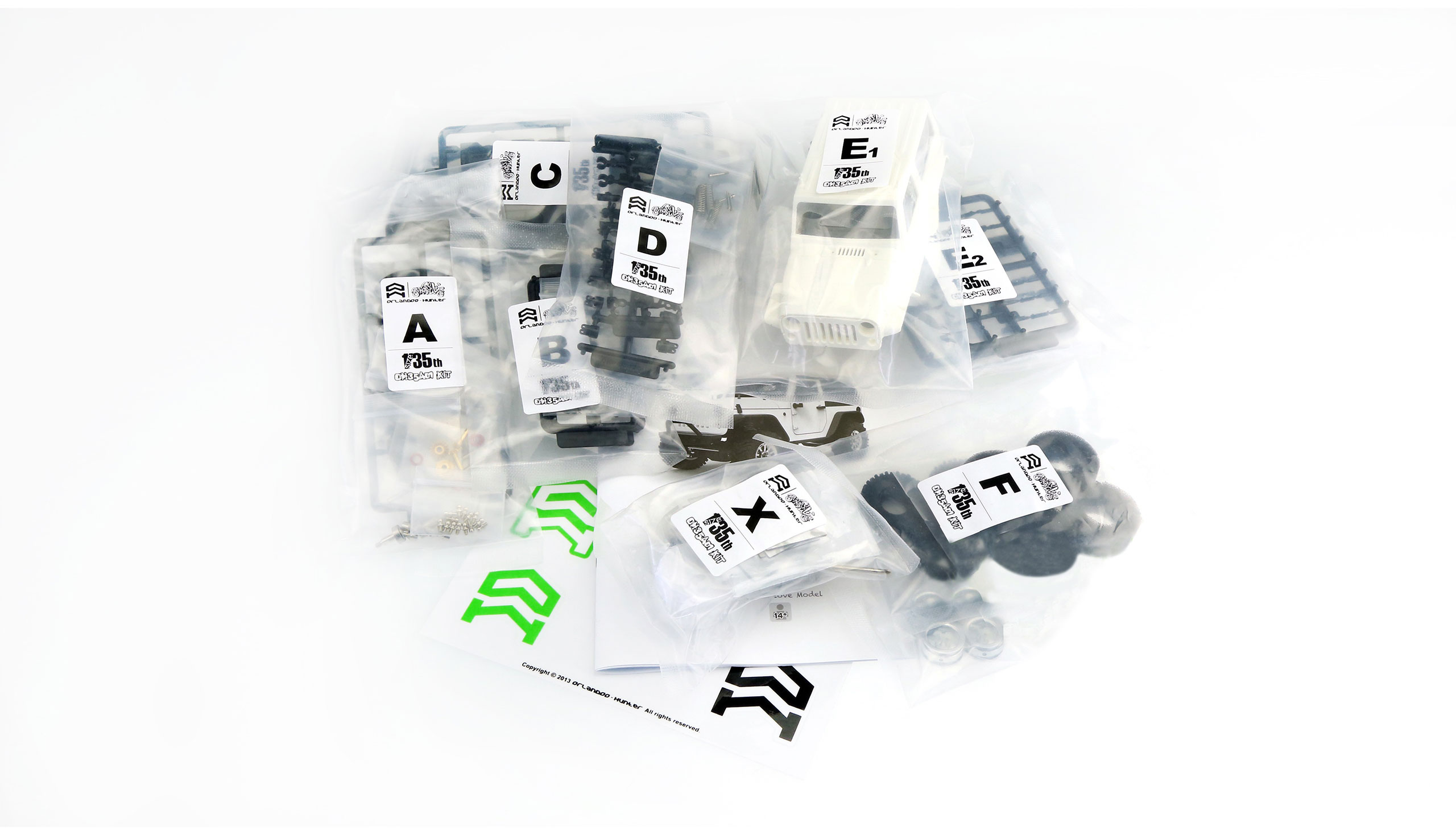 Hochwertiges Kit eines Geländeswagens im Maßstab 1:35. Echter Modellbau für Liebhaber hochdetaillierter Scaler. Alle Bauteile sind vorgestanzt und vorgefertigt. Der Bausatz wird mit allen elektronischen Komponenten geliefert. Mit dem gut dimensionierten 300kv Motor, dem Regler (ESC), einem digitalen Servo und dem 2S 7,4V Li-Po Akku sind gute Fahreigenschaften garantiert. Zusätzlich verfügt das Fahrzeug über einen Spritzwasserschutz, der auch Outdoor-Anwendungen zu lässt.