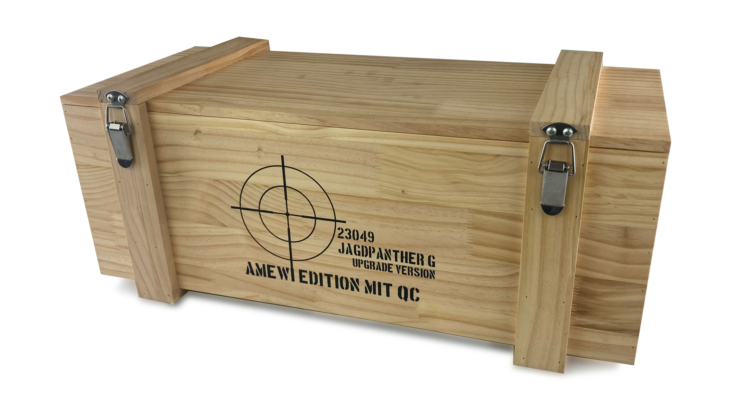 Die Holzkiste ist ein Bonus und berechtigt nicht zur Reklamation bei eventuellen, äußeren Beschädigungen an der Echtholzbox.