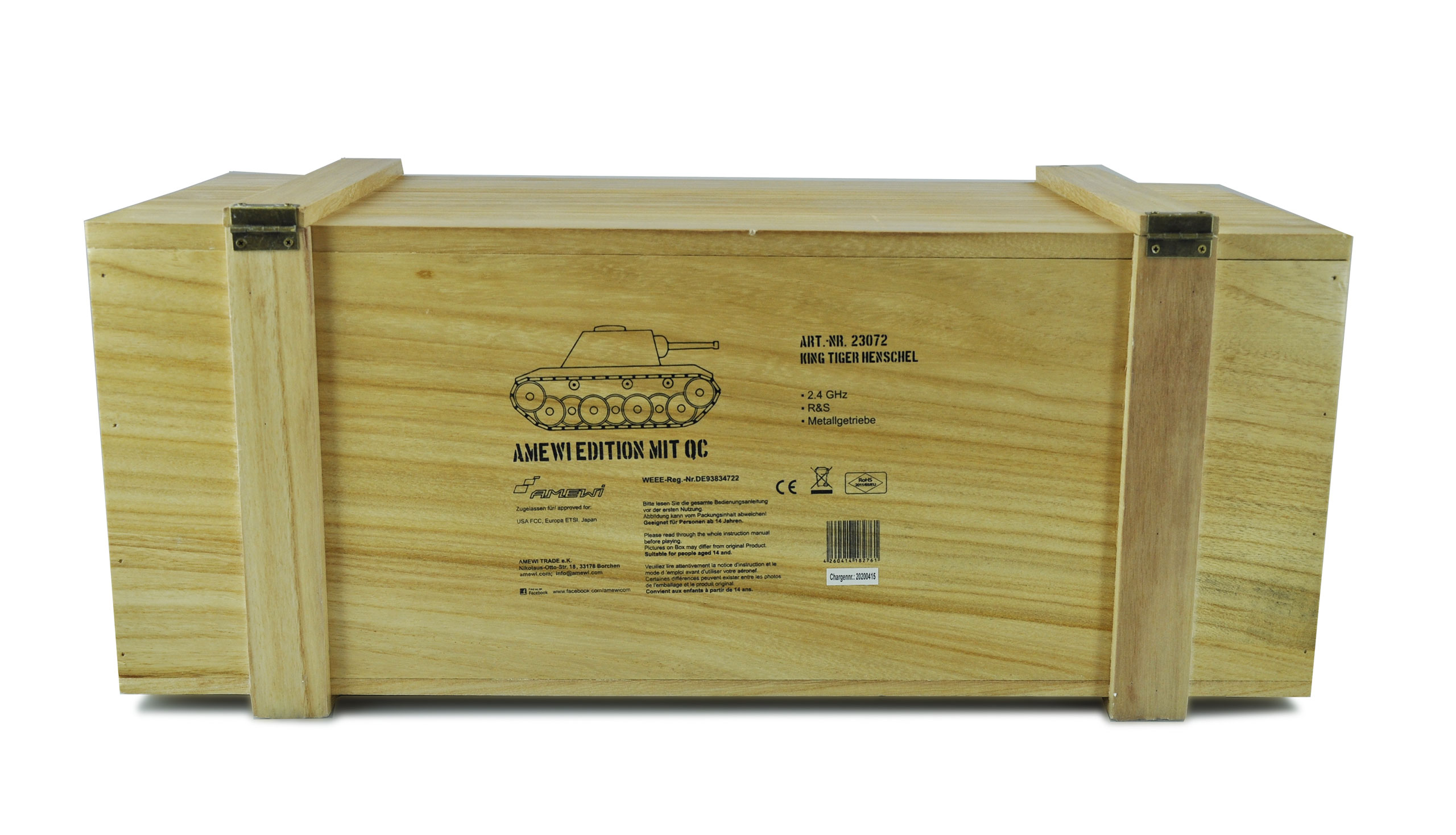 Das Modell wurde vorm Verpacken auf Funktion geprüft und ein Funktionsprotokoll liegt dem Modell bei. Die Lieferung erfolgt in einem passgenauen Styroporkern und wir von Amewi liefern eine massive Echtholzbox in Naturfarbe gratis mit