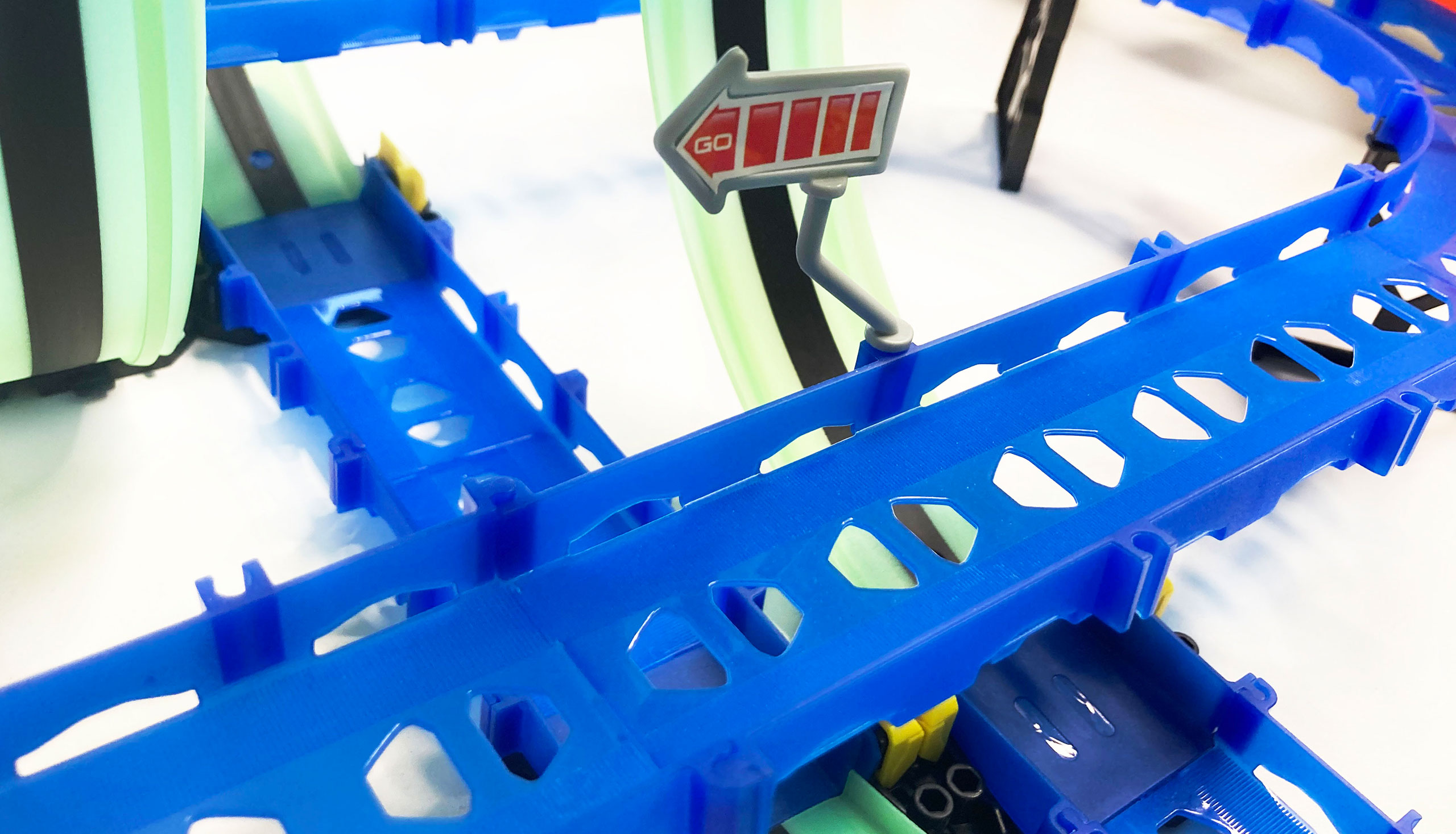 Glow-in-the-Dark: Streckenteile (Loopings) leuchten im Dunkeln