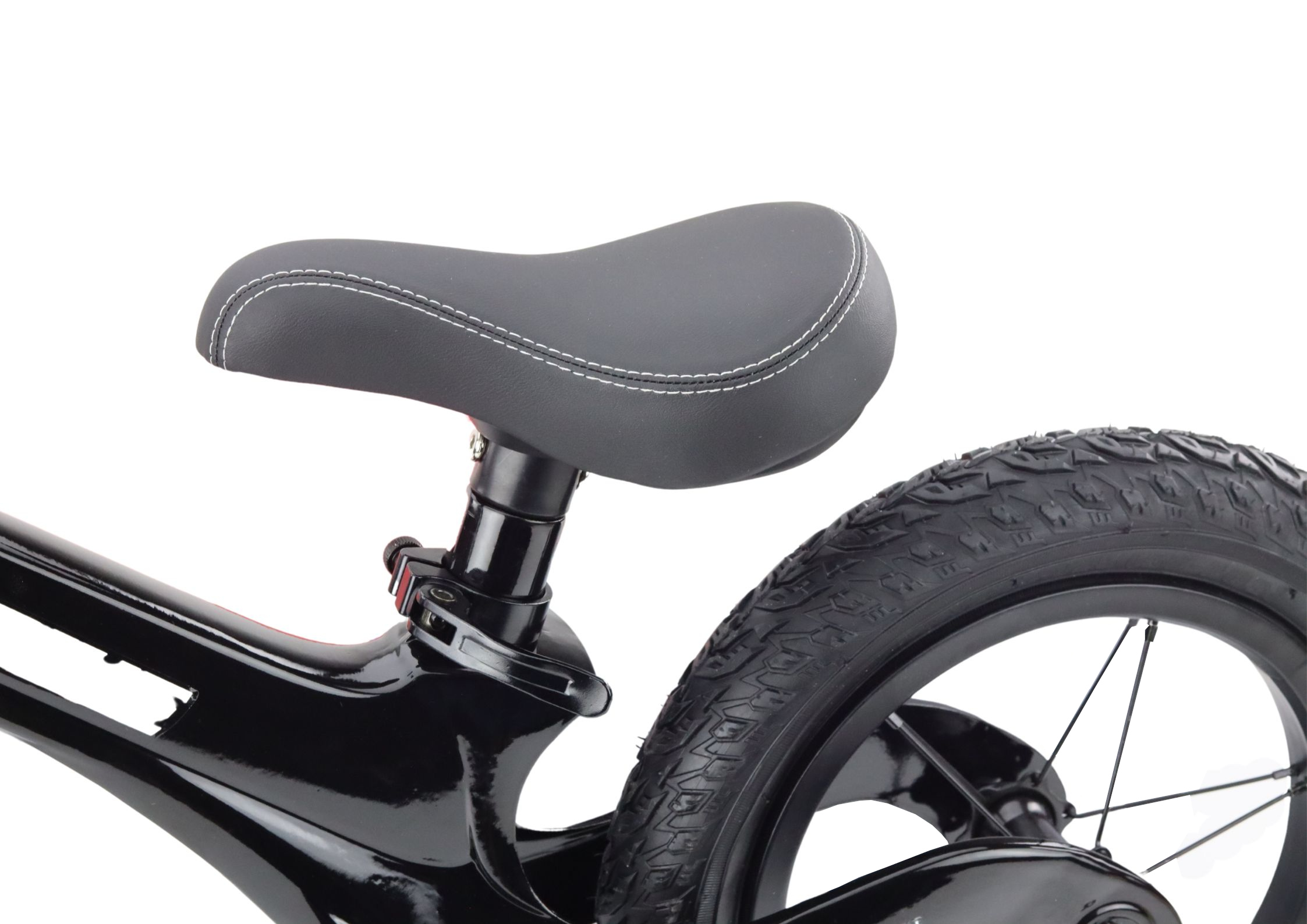 LAUFRAD MAGNEZIO RS – ULTRALEICHTER MAGNESIUMRAHMEN, EVA-RÄDER Das Laufrad MAGNEZIO RS ist ein ideales Angebot für anspruchsvolle Eltern und aktive Kinder von 3 bis 6 Jahren. Die moderne Konstruktion mit ultraleichtem Magnesiumrahmen garantiert nicht nur geringes Gewicht, sondern auch Langlebigkeit, Robustheit und außergewöhnlichen Fahrkomfort. Mit dem MAGNEZIO RS entwickeln die Kleinsten auf natürliche Weise Gleichgewicht, motorische Koordination und räumliche Orientierung. Geländefahren ist zudem eine hervorragende Möglichkeit, die Fitness zu verbessern und sich auf das spätere Erlernen des klassischen Fahrradfahrens vorzubereiten. Das Rad ist mit wartungsfreien EVA-Schaumrädern mit einem Durchmesser von 31 cm ausgestattet. Diese sind leicht, pannensicher und bieten guten Halt auf unterschiedlichen Untergründen. Dank der verstellbaren Sattel- und Lenkerhöhe wächst das Laufrad mit dem Kind mit. Ergonomische Konstruktion, stilvolles Design und solide Verarbeitung machen das MAGNEZIO RS zu einem zuverlässigen Begleiter für Kinderausflüge. SPEZIFIKATIONEN: Rahmenmaterial: Magnesiumlegierung Räder: EVA-Schaum Raddurchmesser: 31 cm Fahrradlänge: 86 cm Sattelhöhe: 30–45 cm Lenkerbreite: 41 cm Gewicht: 3,5 kg Alter: 3–6 Jahre Zulässiges Benutzergewicht: 30 kg Farbe: Schwarz Verpackungsmaße: 76 x 43 x 15,5 cm SETINHALT: MAGNEZIO RS Laufrad Montageanleitung Kartonverpackung