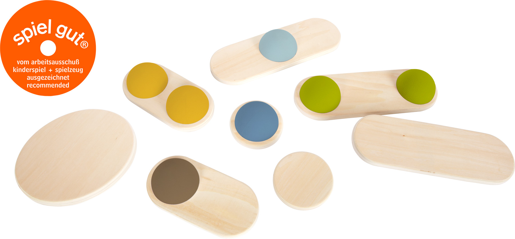 Diese beidseitig nutzbaren Balanciersteine aus stabilem Holz sprechen nicht nur den Gleichgewichtssinn und Bewegungsdrang kleiner Abenteurer an, sie trainieren auch mit viel Spaß Balance und Koordination! Die unter jedem Balancierstein unterschiedlich angeordneten Halbkugelelemente aus robustem Schaumstoff stellen Kinder dabei vor verschiedene Herausforderungen. Miteinander kombiniert, entsteht aus allen Steinen zusammen ein kreativer Balancierpfad mit individuell anpassbarem Schwierigkeitsgrad. Durch die schlichte Gestaltung und die simple Formgebung in Kombination mit modernen Farben und viel naturfarbenem Holz passen sich die Steine jedem Wohn- und Kinderzimmer optimal an! Besonders praktisch: Durch die Möglichkeit des individuellen Parcoursbaus kann der Schwierigkeitsgrad an Können und Alter der Kinder angepasst werden – die Balanciersteine „wachsen somit wie von selbst mit“. Dabei regen einzeln platzierte Balanciersteine oder ein kompletter Balancierparcours zu immer neuen Spiel- und Bewegungsideen an. Auch für Therapiezwecke geeignet!.ACHTUNG! Nicht für Kinder unter 3 Jahren geeignet.|ACHTUNG! Kleine Teile. Erstickungsgefahr. Hinweise aufbewahren..Inhalt: